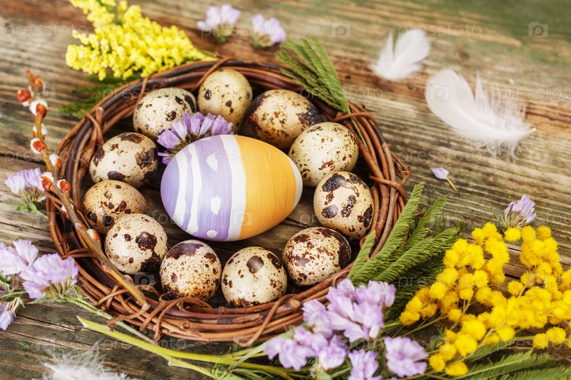 Пасхальный натюрморт с цветами и яйца