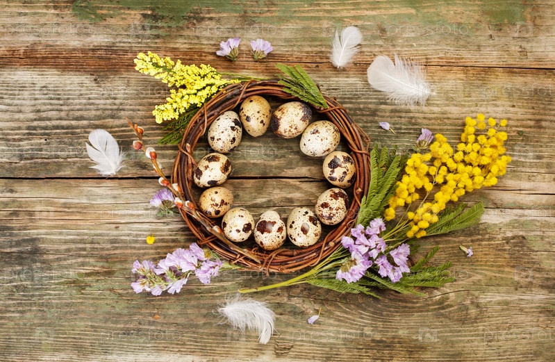 Пасхальный натюрморт с цветами и яйца
