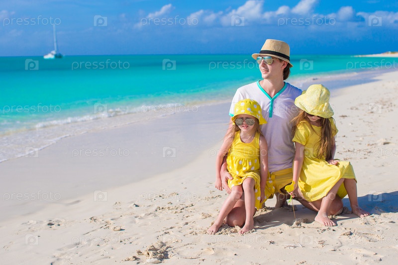 Отец с детьми на пляже