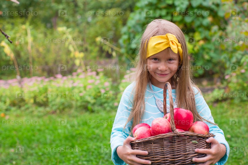 Девочка с корзиной яблок