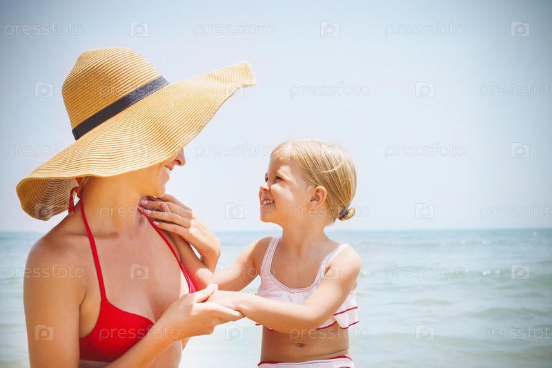 Счастливая мать и дочь на берегу моря