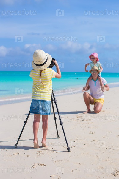Отец с дочерьми на пляже