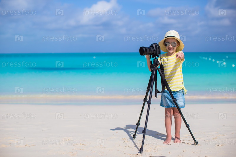 Маленькая девочка с камерой на пляже