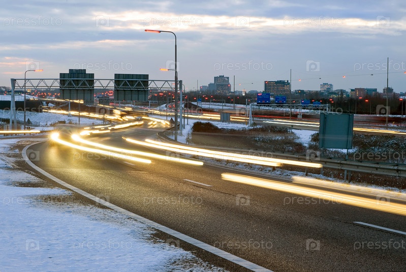 Автомобильное шоссе зимнем вечером