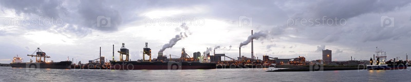 Разгрузка руды и угля на металлургическом комбинате у гавани