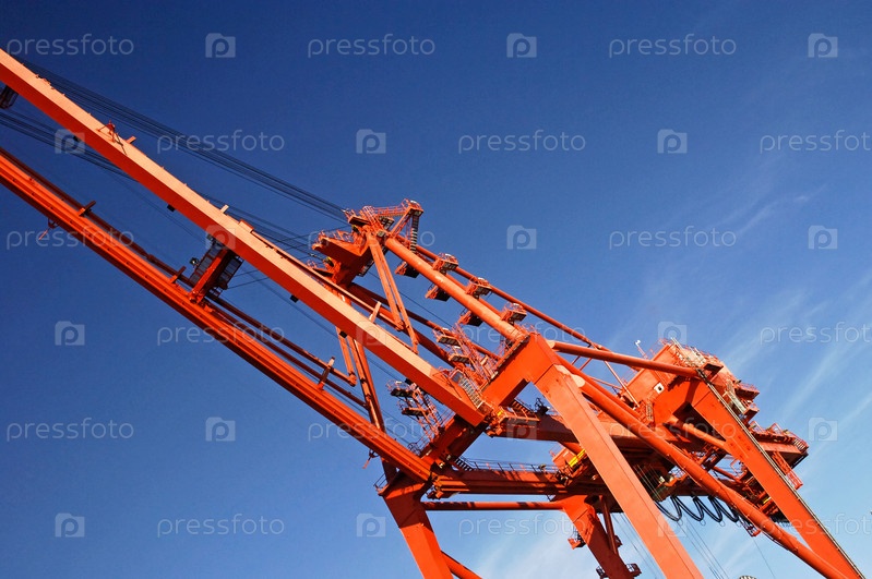 Контейнерный кран для терминала на фоне голубого неба