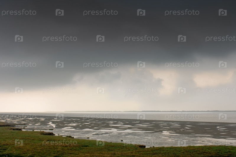 Грозовые тучи над Западным Шельдом во аремя отлива, Зеландия, Нидерланды