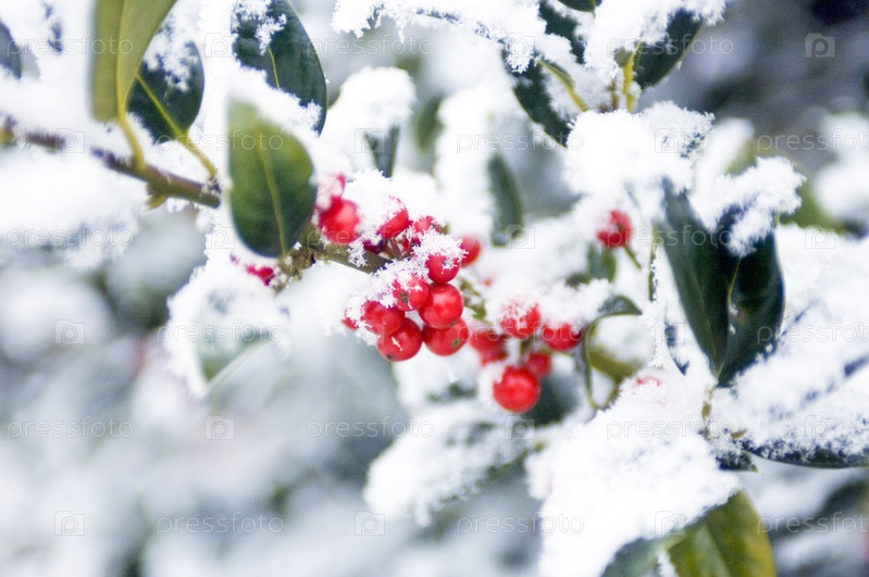 Ягоды европейского падуба в снегу