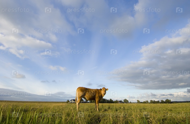 Коричневая корова в поле