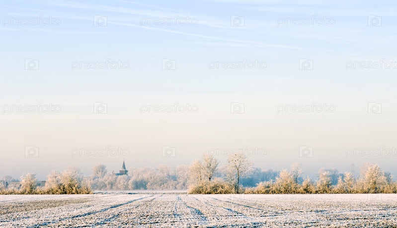 Красивый зимний пейзаж с видом на церковь, Нидерланды