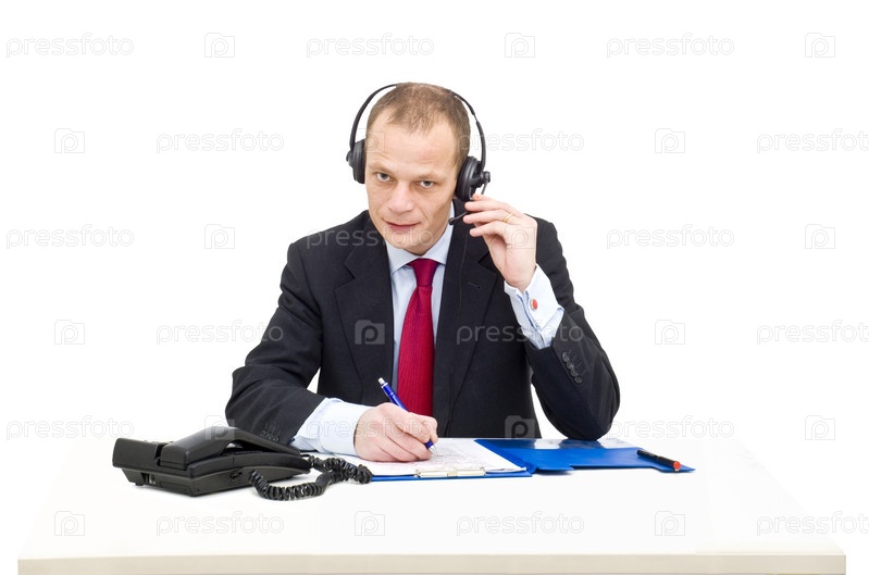 Бизнесмен в наушниках с микрофоном