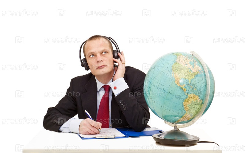 Бизнесмен внимательно слушает разговор на другом языке