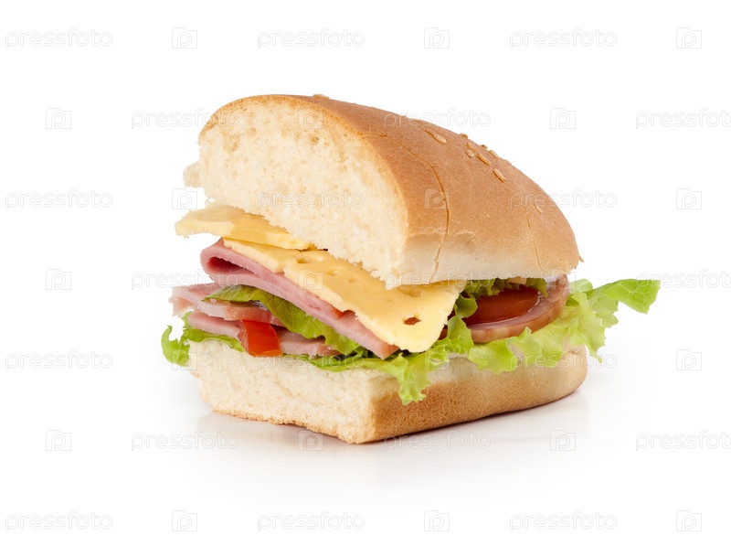 Сендвич с ветчиной на белом фоне