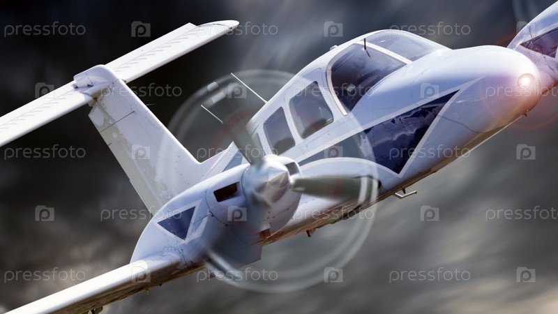 Частный самолет летит в штормовом небе