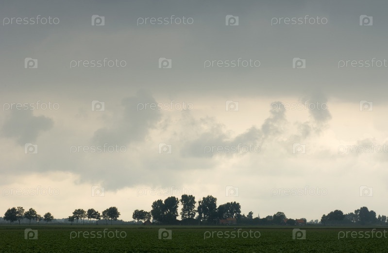 Штормовое небо над польдером, провинция Зеландия, Нидерланды