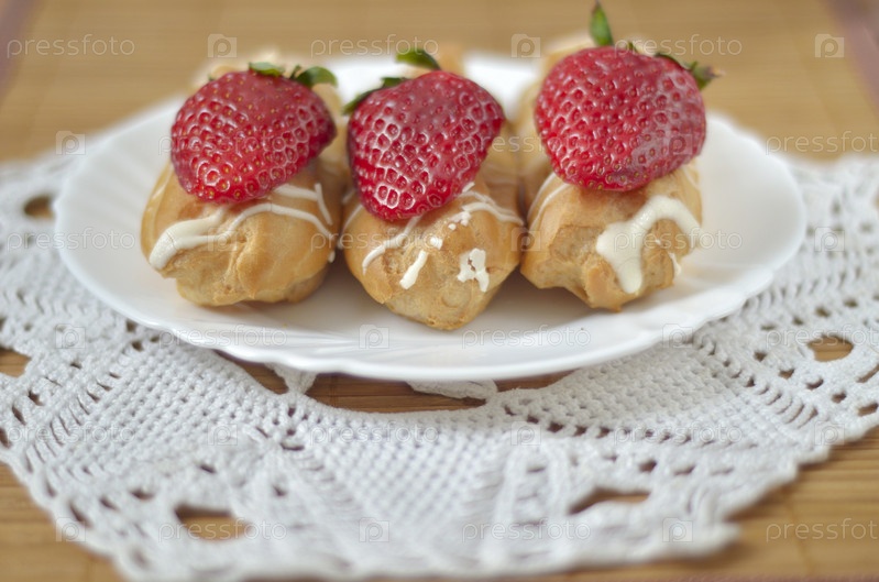 Пирожные с клубникой на тарелке