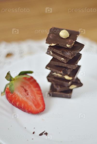 Клубника и шоколад на белой тарелке