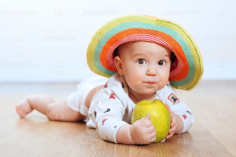 Маленький ребенок с яблоком