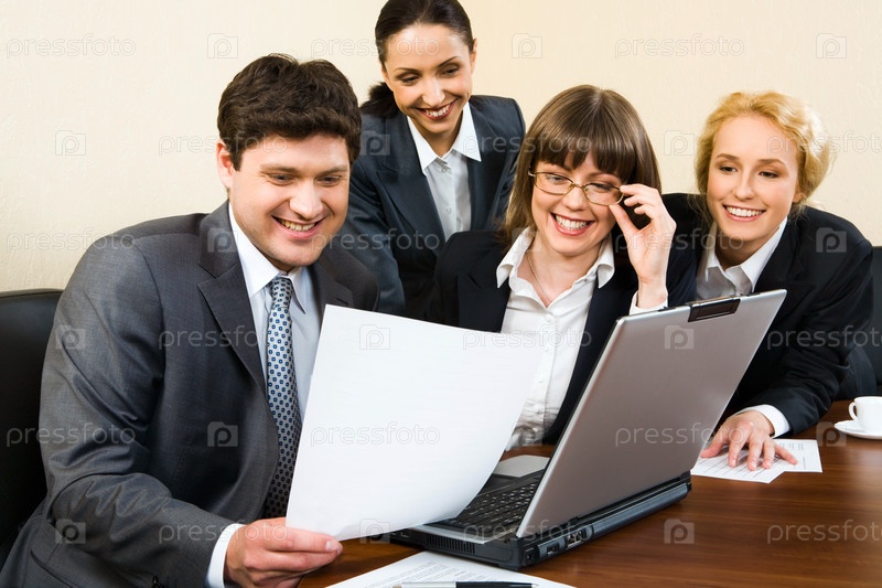 Деловые люди сидят в офисе и смотрят на документ