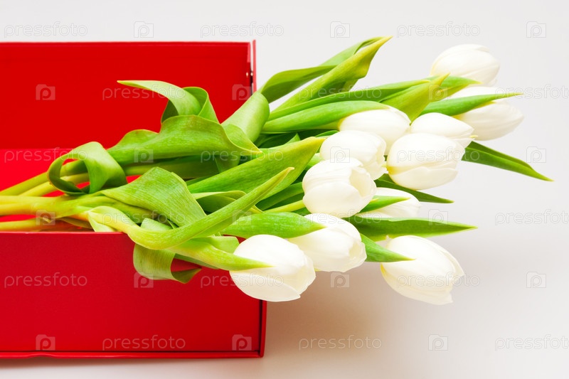 Красивые тюльпаны в красной коробке