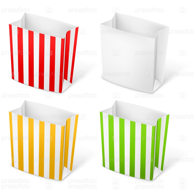 Набор бумажных пакетов, на белом фоне