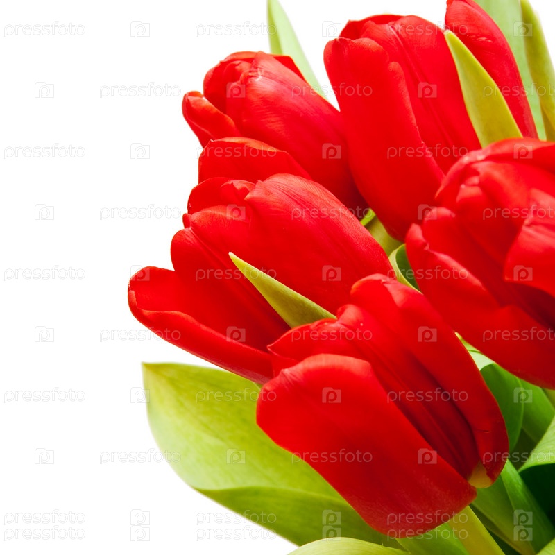 Красивые красные тюльпаны на белом