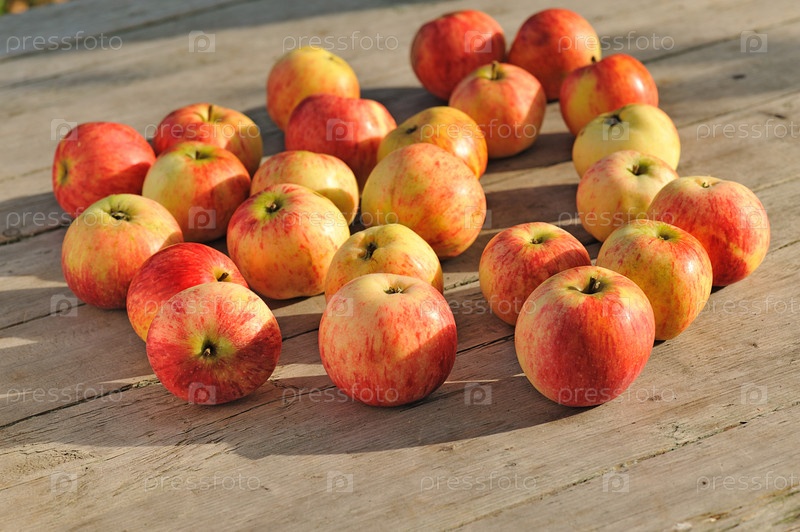 Яблоки на деревянной поверхности