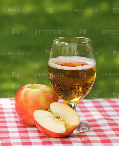 Яблочный сидр и яблоки на природе