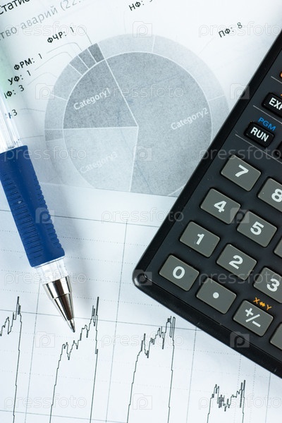 Годовой отчет, калькулятор и ручка