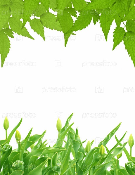 Листья клематиса и бутоны тюльпанов