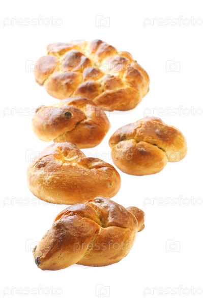 Object on белый - пища для выпечки - булочка с султаной