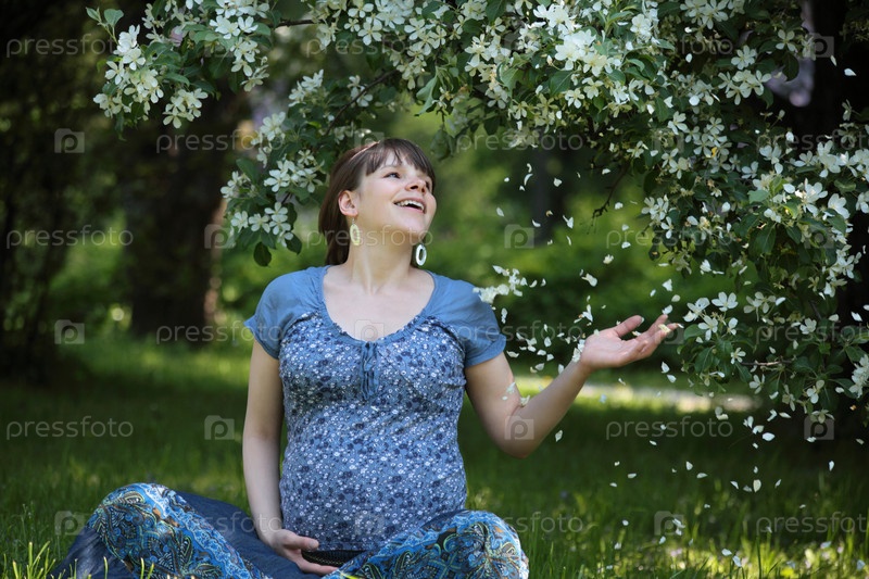Беременная женщина отдыхает в парке