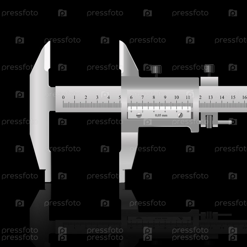 Измерительный инструмент на черном фоне. Штангенциркуль