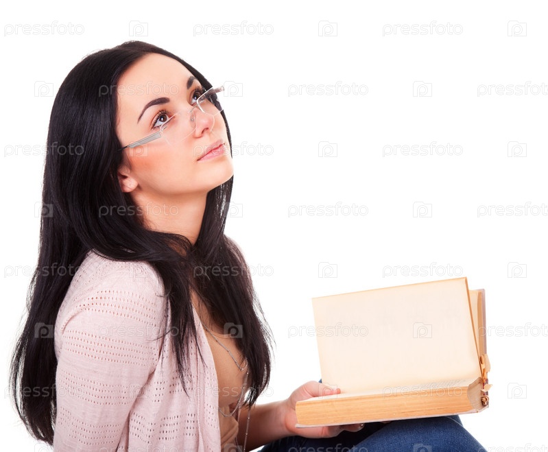 Девушка с книгой на белом фоне