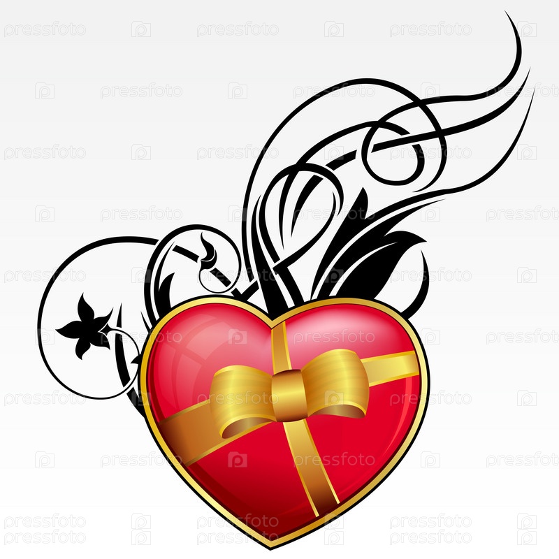 Красное сердце с бантиком и лентой