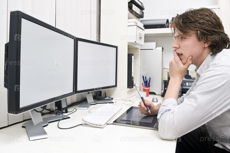 Молодой дизайнер за компьютером в офисе