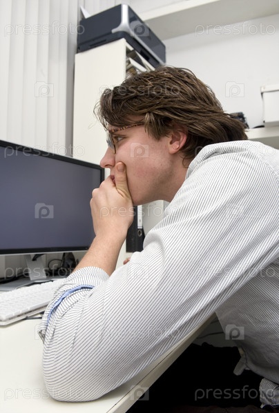 Молодой человек за компьютером в офисе