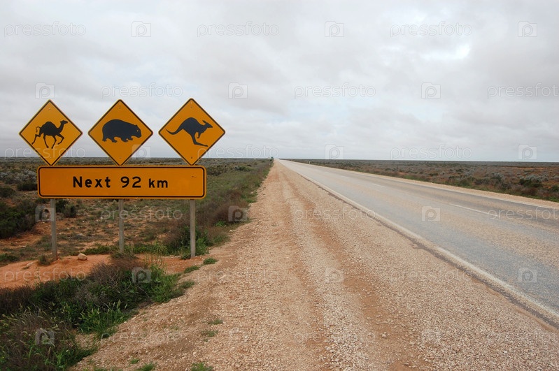 Дорожный знак в Австралии, равнина Нулларбор