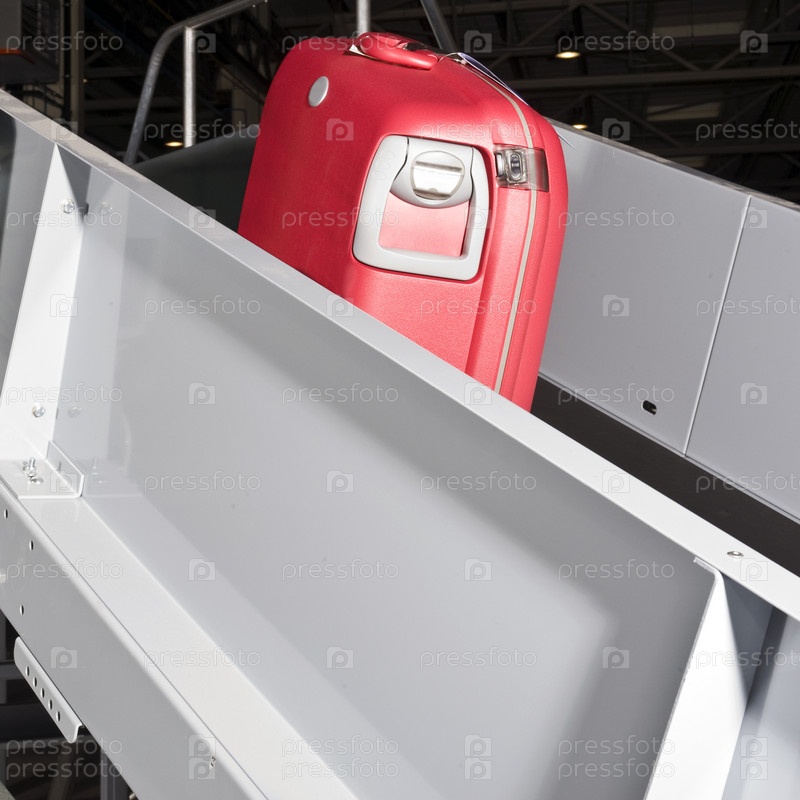 Красный чемодан на конвейере