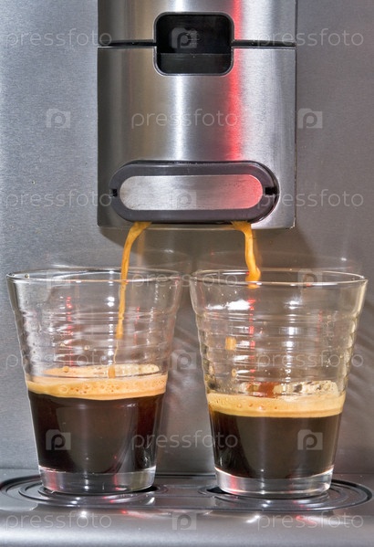 Кофеварка и два стакана кофе