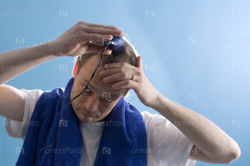 Мужчина среднего возраста с машинкой для стрижки волос