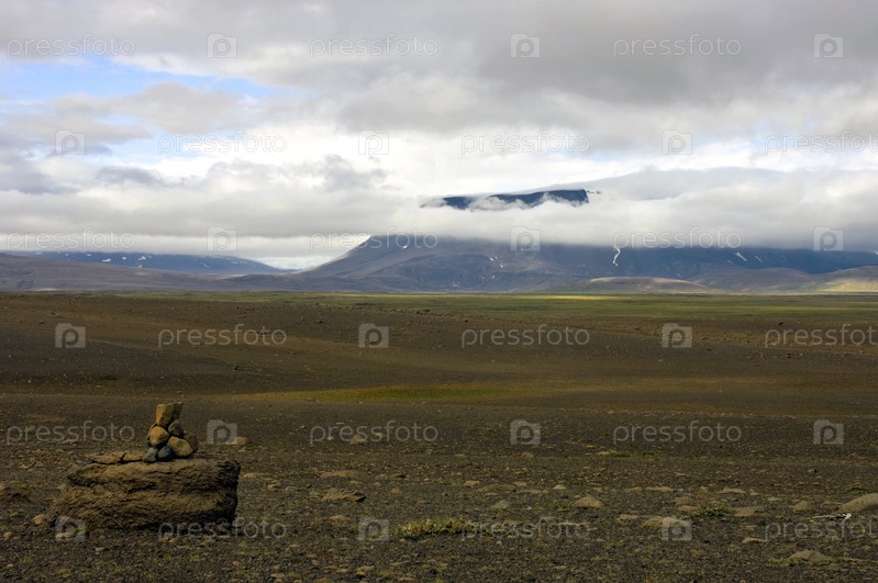 Дорога Спренгисандур в бесплодной тундре, на заднем плане ледник, Исландия
