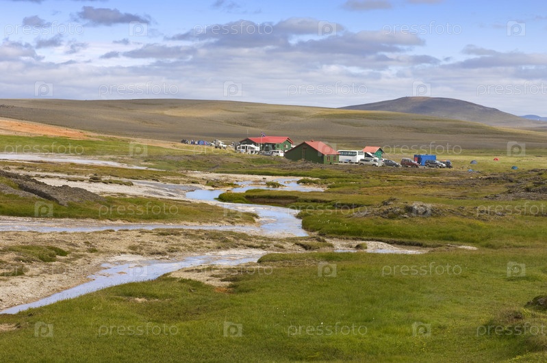 Базовый лагерь неподалеку от района геотермальных источников в Исландии