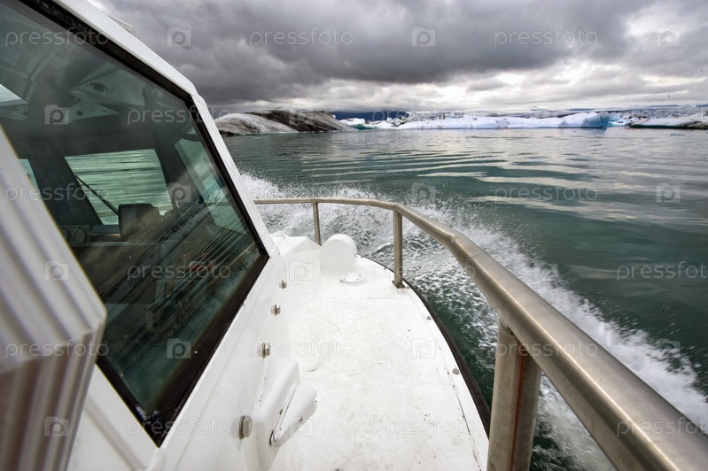 Машина-амфибия на ледниковом озере Исландии