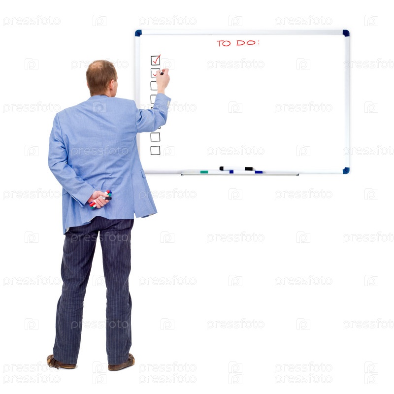 Мужчина отмечает выполненные задачи на доске