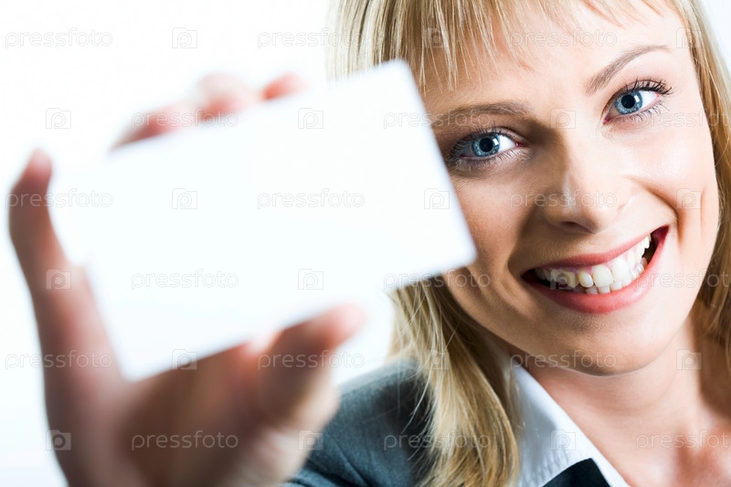 Молодая красивая женщина, представляющая свою визитку