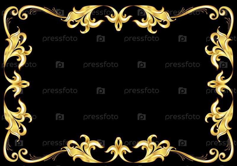 Абстрактная витиеватая золотая рамка на черном фоне