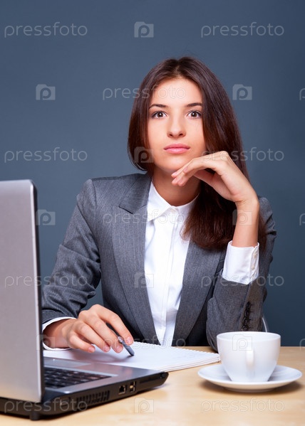 Сконцентрированная женщина, работающая с ноутбуком и документами в офисе