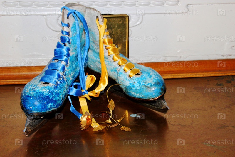 Красивые старинные коньки, окрашенные в зимнем стиле