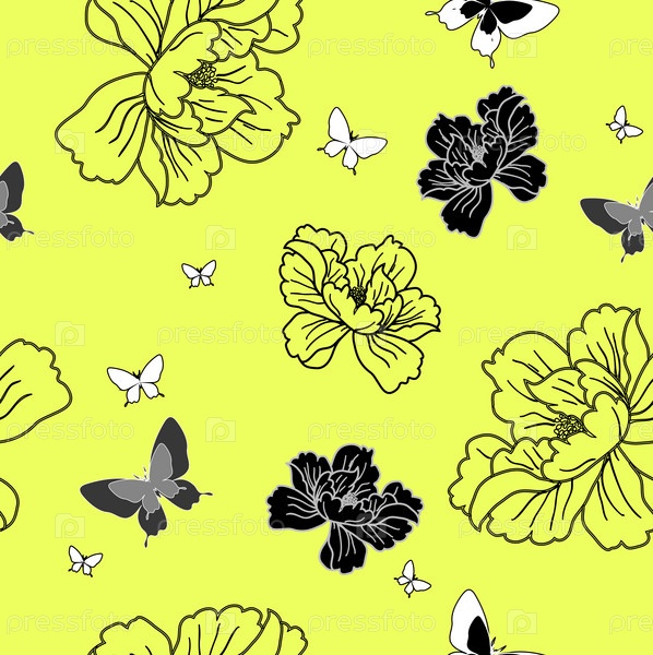 Бесшовные обои с цветами и бабочками